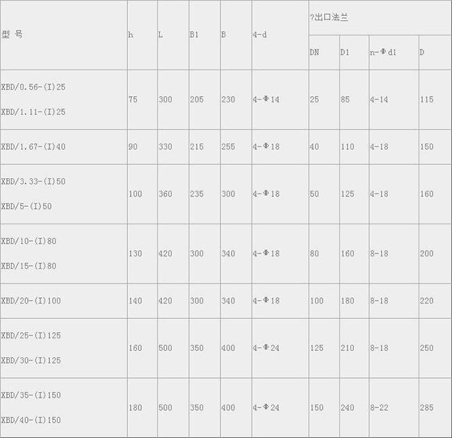 XBD-(I)型管道式消防泵是本司在原有立式多級管道泵基礎上根據消防泵的最新標準要求而開發出的新一代XBD管道型中低壓消防泵組產品。供輸送不含固體顆粒的清水及物理化學性質類似于水的液體之用。適用于各種場合如住宅、賓館、辦公大樓、商業大樓、工廠、醫院等處的消防供水。